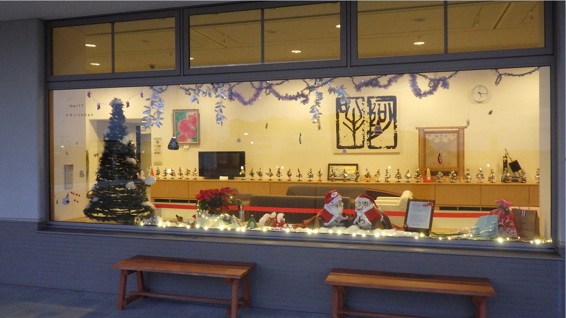 佐土原文化センター大ホールのギャラリーにクリスマスイルミネーションを設置しました。